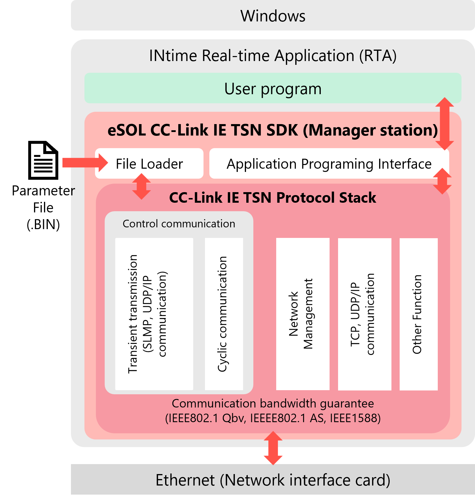 CC-Link IE TSNプロトコルスタックとサンプルアプリケーションをSDKとして提供します。SDKを利用することにより、早期にアプリケーション開発を進めることが可能になります。eSOLでは以下の2種類のSDKを提供しています。