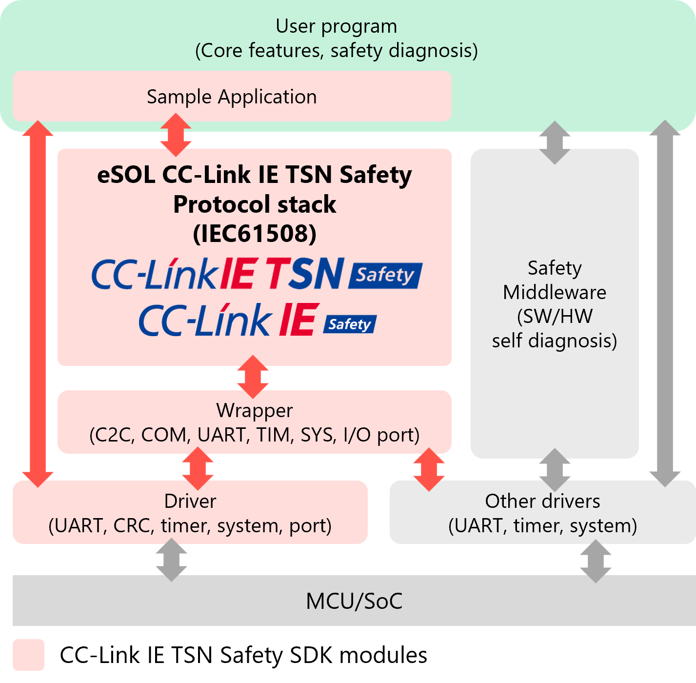 CC-Link IE TSNプロトコルスタックとサンプルアプリケーションをSDKとして提供します。SDKを利用することにより、早期にアプリケーション開発を進めることが可能になります。eSOLでは以下の2種類のSDKを提供しています。