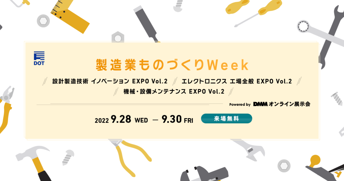 | 参加お申込み | お申込み方法の詳細は、イベント公式サイトをご確認ください。 ・製造業ものづくり Week ・エレクトロニクス/工場全般 EXPO vol.2 ・機械・設備メンテナンスEXPO vol.2 |