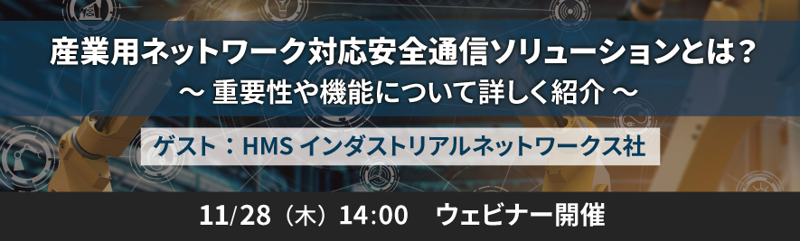 産業用ネットワークにおける安全通信をテーマとしたウェビナーを、HMSインダストリアルネットワークス社をゲストに迎えZoomを使ったライブ形式で開催します。